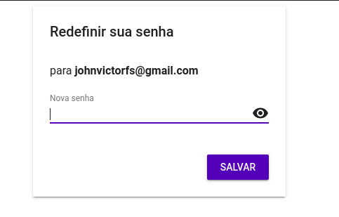 customTokenserá retornado com os dados do Usuário, utilizado para uniciar uma sessão pelo firebase-client. Ler Mais.try { firebase.auth().signInWithCustomToken(user.customToken) } catch (error) { const errorCode = error.code; const errorMessage = error.message; } -