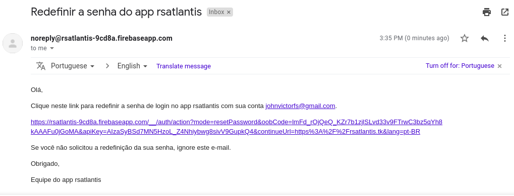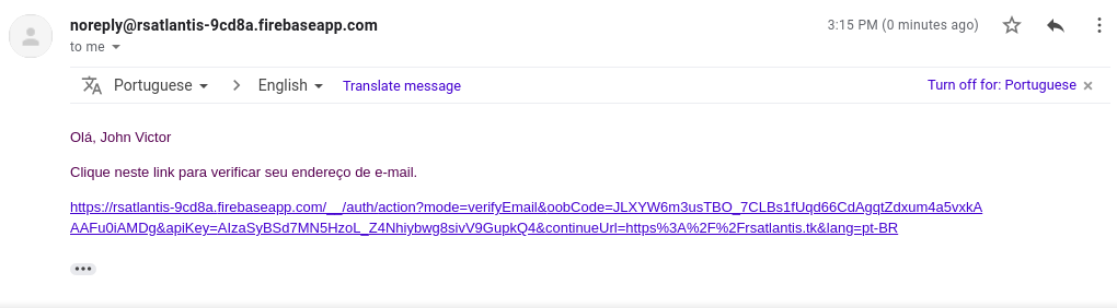 Email de Confirmação Padrão do Firebase